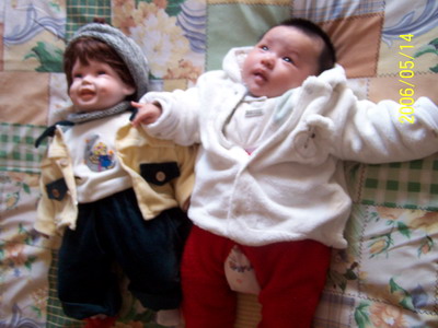 14日上午,游完泳后,马上去了椒江小姨婆家,爸爸要去接外太公回家啊。小多多和小姨婆家的洋娃娃合了一张影,两个居然差不多大。呵呵。看看就有意思。